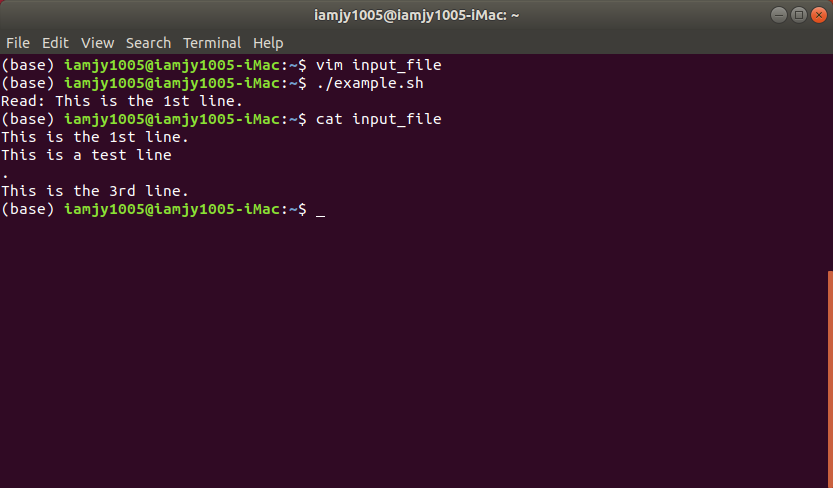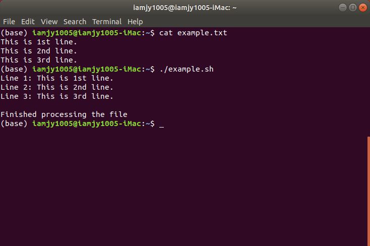 done < ${1} # 명령 프롬프트에서 입력받은 첫번째 매개변수를 입력으로 받는다.